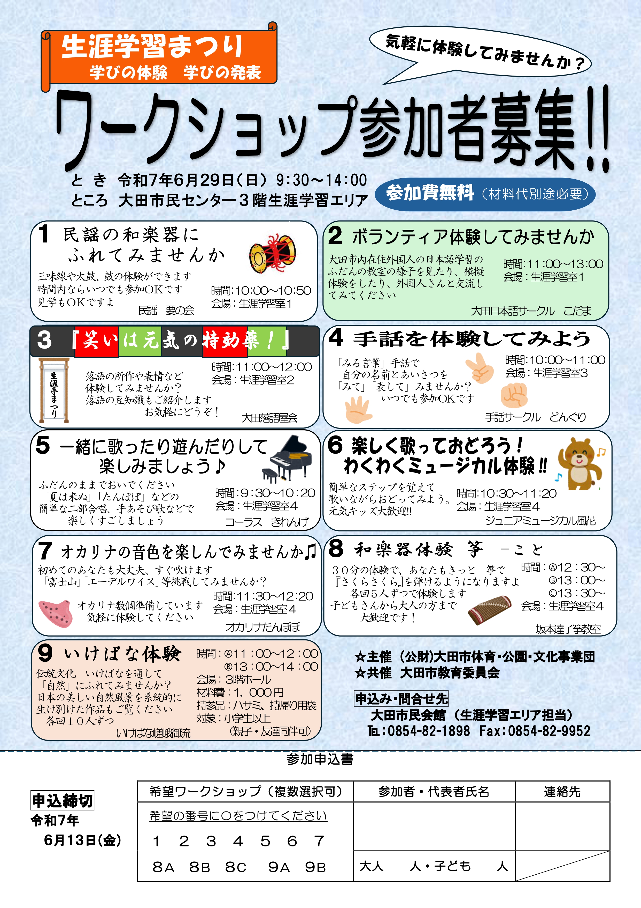 大田市民会館生涯学習エリア担当(0854-82-1898)